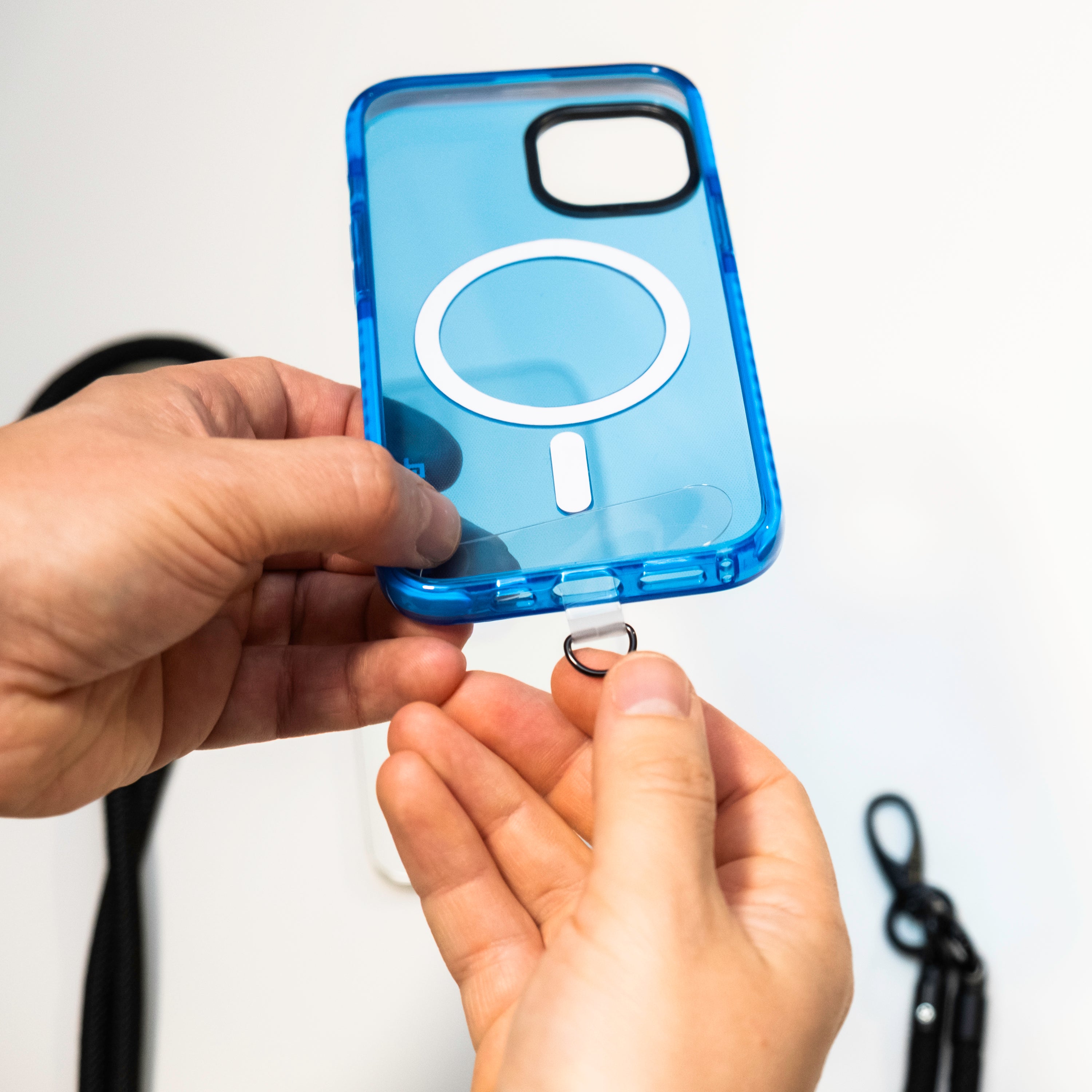 Der Cyberloop macht dein Phone tragbar – im wahrsten Sinne. Einfach einhängen, umhängen, losziehen. Sitzt bequem, hält sicher. Kompatibel mit allen Cybercases.